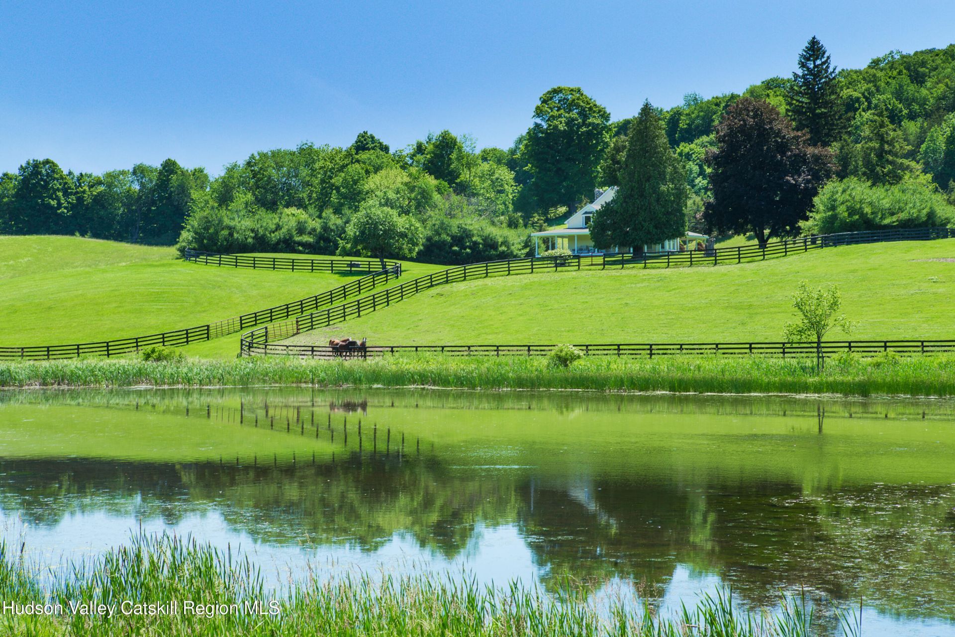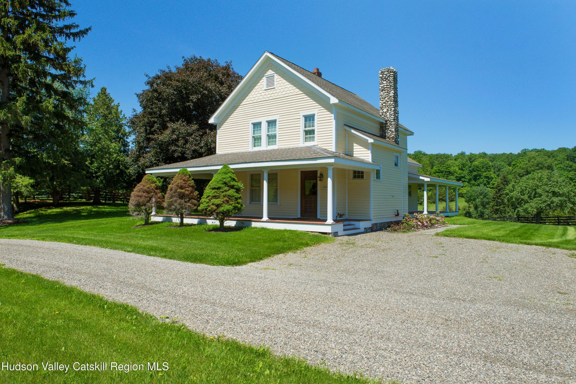 Located on the grounds of a 119+ acre estate, this 2,300+ square foot home has been totally renovated and offers ease of living in a beautiful setting. The first floor of this home comprises a living room with wood burning fireplace, formal dining room with large bow window, spacious eat-in-kitchen, lovely den/office and a half bath. The second floor has a master suite, 2 additional bedrooms and a full bath. Relax on the wrap-around porch or picnic on the rear deck overlooking the picturesque lake. Altogether a great getaway country home only minutes from Pine Plains, Millerton and Mashomack.